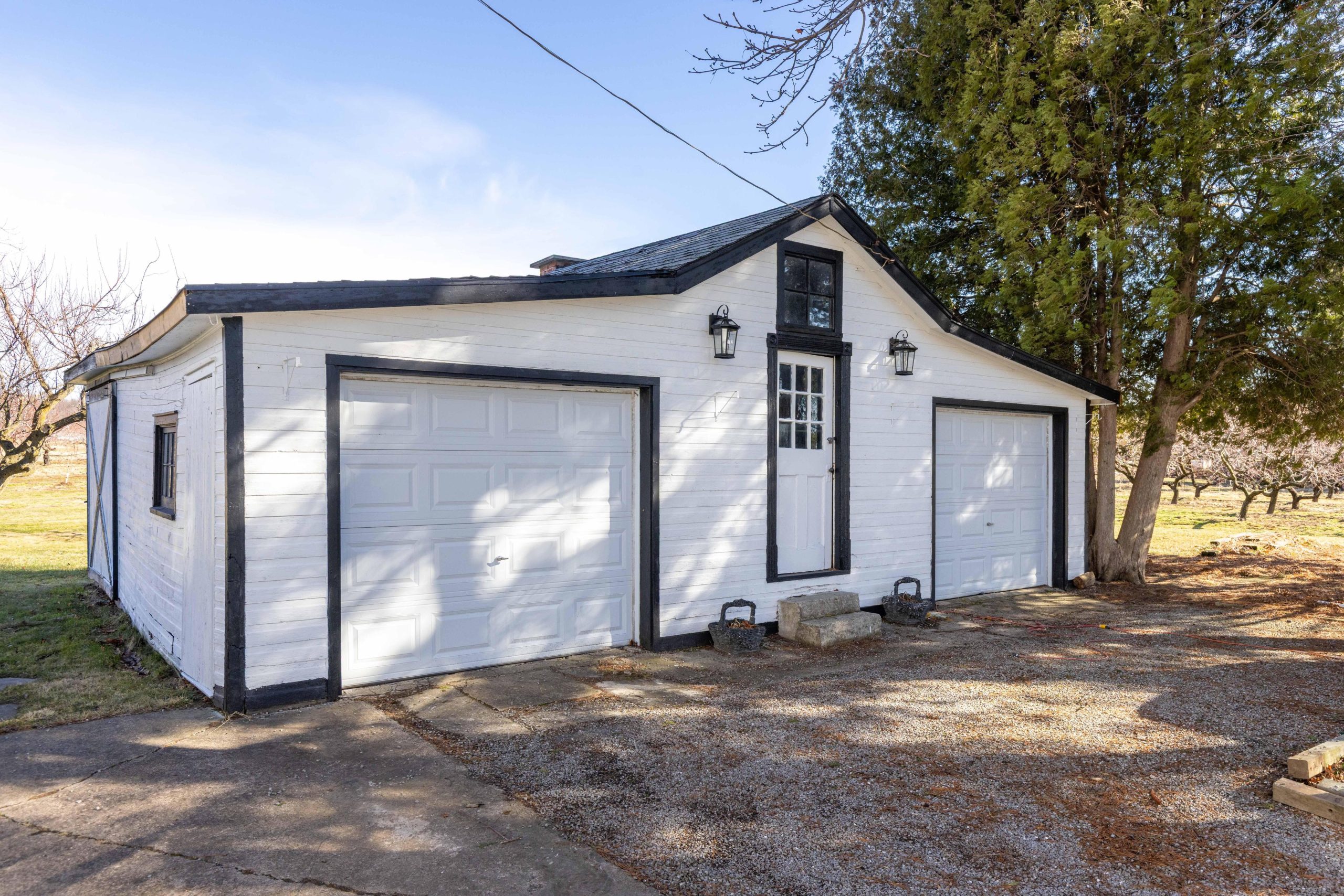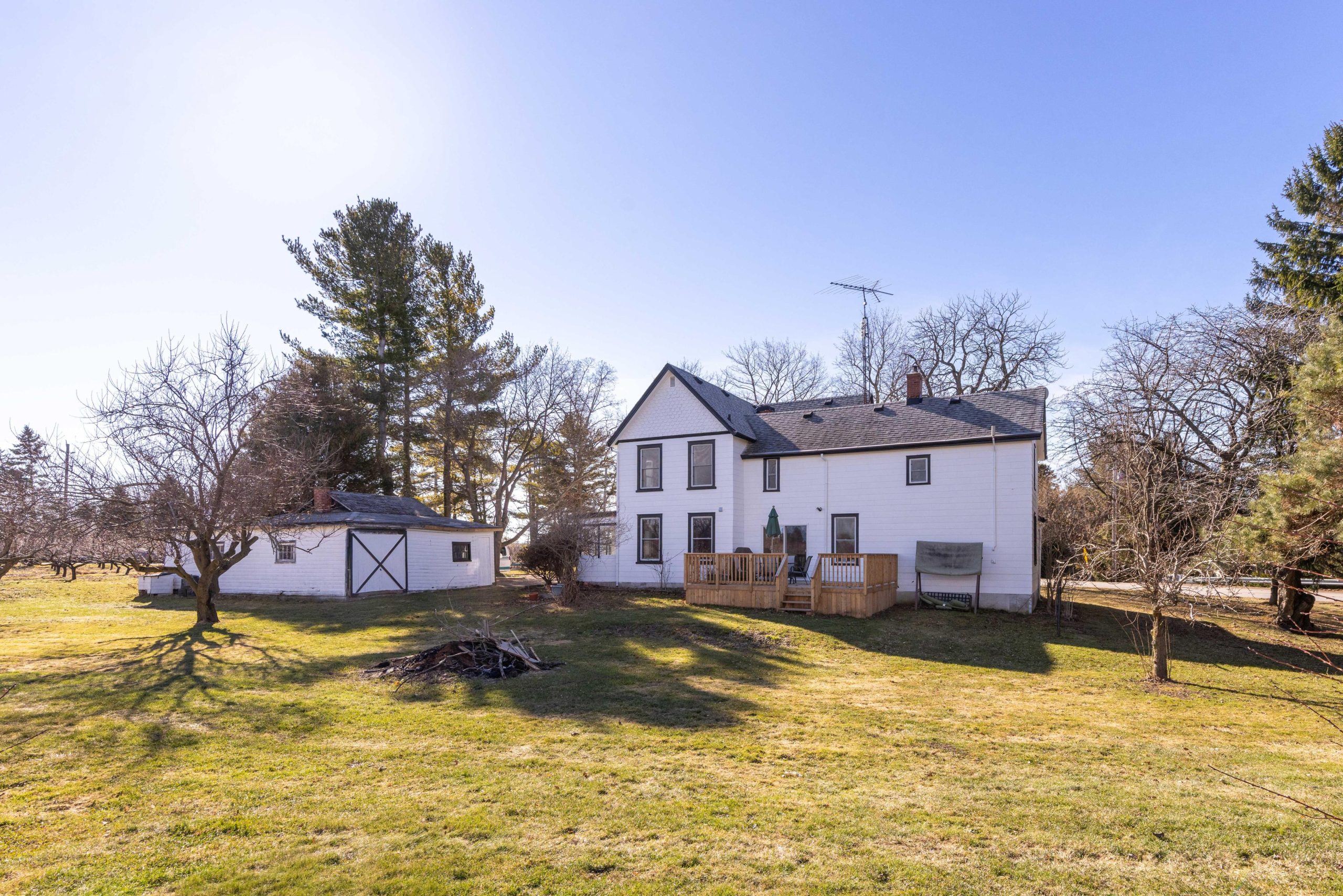 Welcome to 245 Niven Road, a cherished century home on approximately .92 acres in rural Niagara-on-the-Lake’s Peach Country, where quiet, slow-going, country living is just the way of life. Simply a wonderful location, surrounded by mature trees, orchards, vines, & ponds yet a short bicycle ride from all the excitement of Old Town & the convenient amenities of The Village. Almost 3,100 sqft, this home features soaring 9 ft ceilings, 4 great sized bdrms, big, beautiful, bright windows that showcase the stunning views &… low taxes! The main-floor consists of a very large living rm, a dining rm w a beautiful picturesque tiled fireplace highlighting the homes character & charm, a spacious eat-in kitchen w an oversized centre island and plenty of cupboards & counter space, a driveway side mudrm, a family rm w a very nice wood burning stove & sliding doors that lead to the backyard deck (2025), & another main-floor side entrance which leads in to the Laundry rm & a second stairwell providing possible opportunity for generational living, a home business, or rental suite if the appropriate modifications are made. Upstairs you’ll find 4 spacious bdrms all w wonderful views & updated lighting & ceiling fans. The primary bdrm has built-in shelving, a 4 pc ensuite w clawfoot tub & leads to a very neat space which can be used as a study or office that has built-in bookshelves, the back stairwell & a very lovely view of soaring pines & the stunning cherry tree! A large 4-piece family bth completes the spacious upstairs. Very easy to get in & out on the circular driveway & the detached 2 car garage/barn w hydro has extra storage space & could be the perfect hobby /craft area or possibly converted to a bunk house, as it was originally used! This is a wonderful home in a truly magical location that is ready for the next family to love & care for it for many years! Estate Sale, As-Is Where Is, Exterior & Interior Paint 25′, Furnace, AC, HWH 25, All Electrical & Insulation Updated.